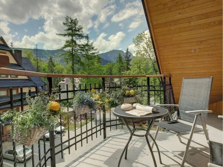 Tak, apartament posiada obszerny balkon z widokiem na Tatry. Balkon znajduje się nad górskim potoczkiem, a delikatny szum wody sprzyja relaksowi. -